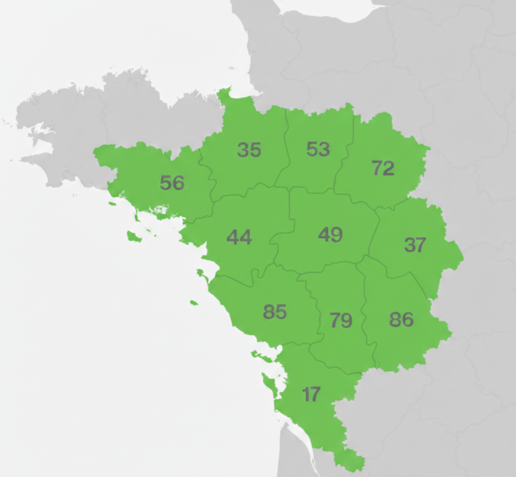 Nous intervenons au cœur des Pays de la Loire et de leurs régions voisines.